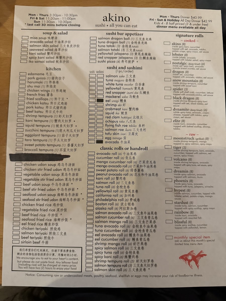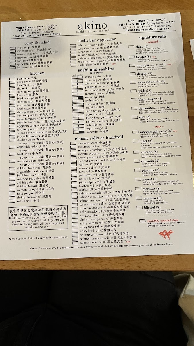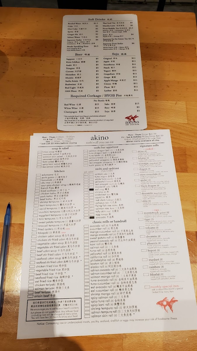 Welcome to Akino, a charming sushi restaurant nestled in the heart of Elmhurst, NY. Renowned for its exquisite all-you-can-eat offerings, Akino presents a diverse menu that delights sushi aficionados and newcomers alike. Highlights include their signature rolls such as the Dreamin, packed with spicy salmon and topped with fresh ikura, and the succulent Rainbow, featuring an assortment of fish atop kani and avocado.